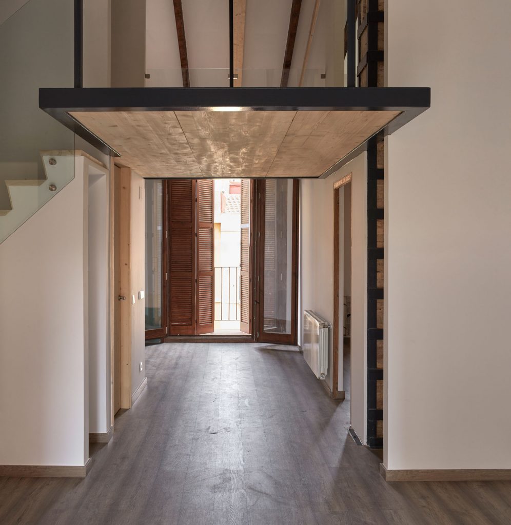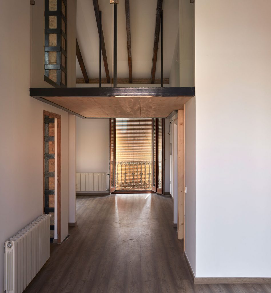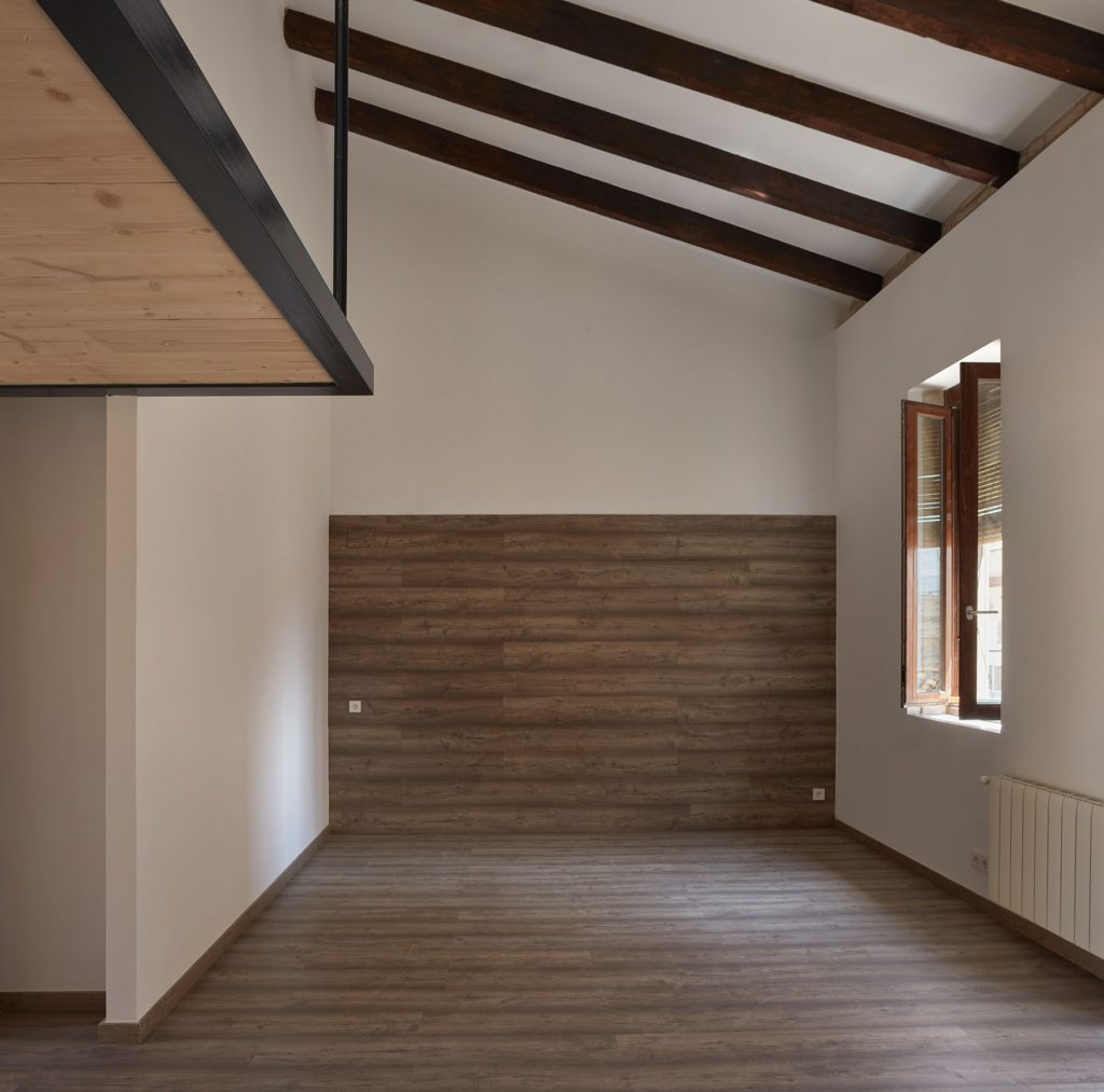 Con el objetivo de añadir amplitud y dimensión, el principal trabajo acometido durante la reforma fue la construcción de un nuevo altillo suspendido de las viguetas y que añade alrededor de 30 metros cuadrados al domicilio. De esta manera conseguimos convertir este espacio en una vivienda de dos alturas y cerca de 85 metros.